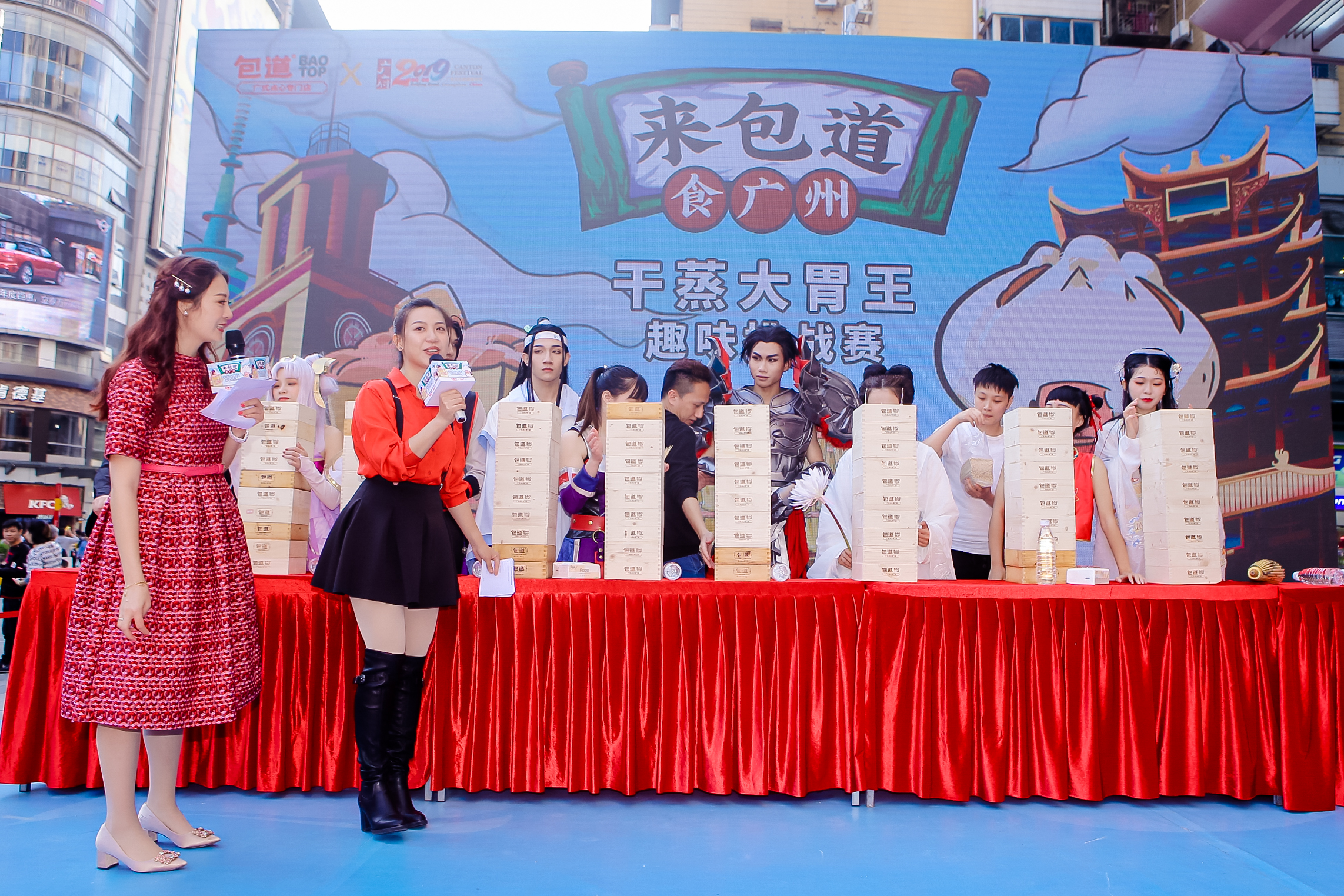 廣式點(diǎn)心是廣府美食文化的重要組成部分。本屆嘉年華攜手廣式點(diǎn)心領(lǐng)導(dǎo)品牌包道舉行“來(lái)包道,食廣州”第二屆廣府大胃王歡樂(lè)賽。活動(dòng)圍繞“干蒸燒麥”開(kāi)展系列活動(dòng),兼具教育性和娛樂(lè)性。點(diǎn)心師傅現(xiàn)場(chǎng)制作干蒸燒麥,展示點(diǎn)心調(diào)餡、包制、蒸煮的全過(guò)程,向現(xiàn)場(chǎng)觀眾普及廣式點(diǎn)心知識(shí),并邀請(qǐng)現(xiàn)場(chǎng)觀眾參與制作。活動(dòng)高潮環(huán)節(jié)大胃王歡樂(lè)賽有別于一般的“速度賽”,宗旨是“輕競(jìng)技、重娛樂(lè),兼顧教育”,傳承廣府點(diǎn)心文化,邀請(qǐng)了8位知名大胃王網(wǎng)紅(KOL)和角色扮演愛(ài)好者(Coser)參賽。