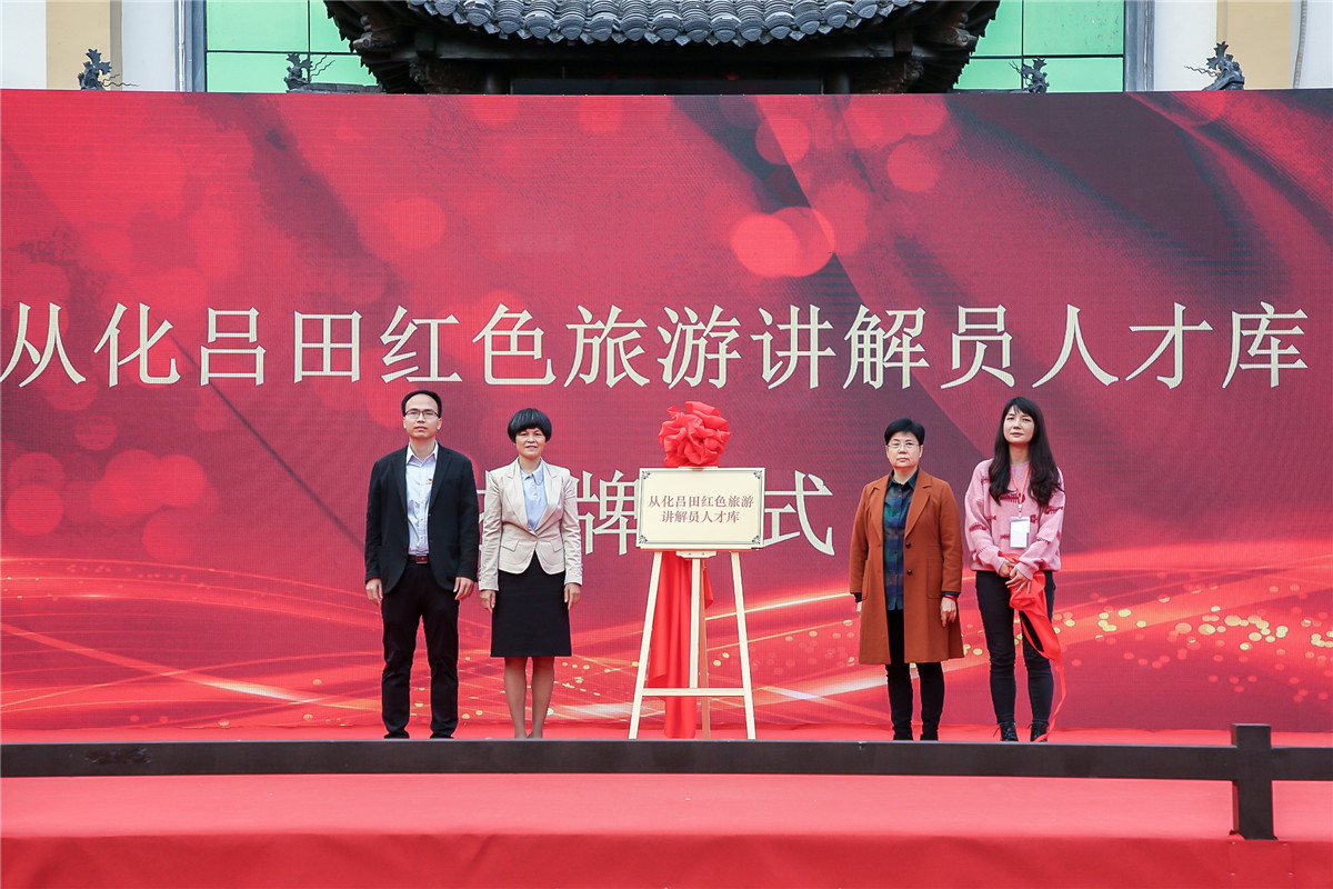大賽上,從化區人大常委會副主任盧鳳萍、從化區政協副主席蔣瓊芳、從化區委組織部四級調研員余賢、呂田鎮黨委委員賴卓藝為“從化呂田紅色旅游講解員人才庫”揭牌。